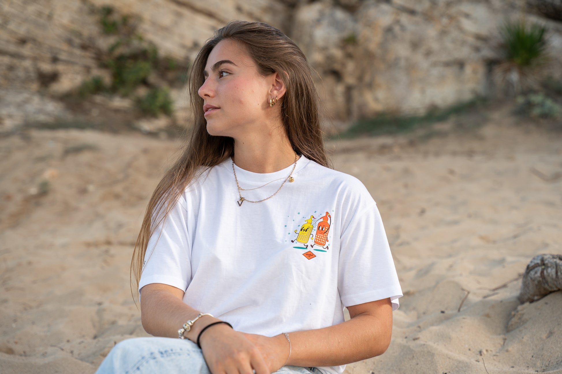 Destaca con estilo y humor con la Camiseta Sifones Divertidos. Su diseño muestra dos sifones coloridos —uno amarillo y otro rojo— con expresiones animadas, sobre un fondo decorativo que transmite un aire creativo, desenfadado y original. Una prenda única que combina cultura local, estética vintage y un toque divertido.
